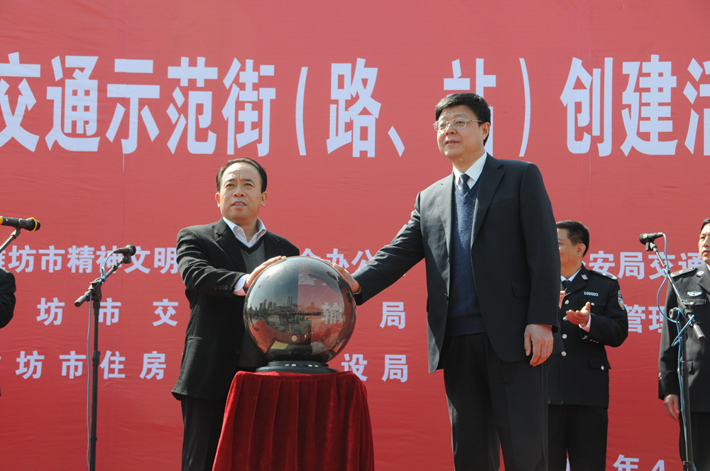 4月6日上午,濰坊市“文明交通示范街(路、站)”創(chuàng)建活動啟動儀式在風(fēng)箏廣場隆重舉行,市委常委、宣傳部長初寶杰,市政府黨組成員、市公安局局長閆希軍,市公安局黨委副書記、交警支隊支隊長陳強,市城市管理行政執(zhí)法局局長張志勇,市公安局交警支隊政委任金禮,市交通運輸局黨委副書記李志民,市住房和城鄉(xiāng)建設(shè)局副局長李振龍等出席啟動儀式。集團公司組織30多名員工作為全市建設(shè)系統(tǒng)的代表參加了啟動儀式。