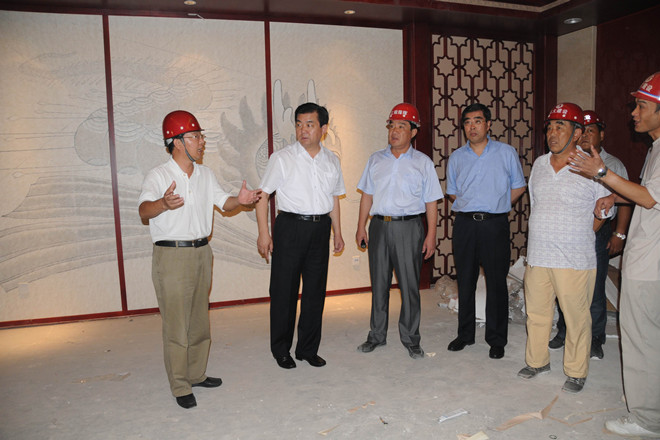 7月16日上午,市委書記許立全在市委副書記王獻(xiàn)玲、副市長夏芳晨、王樹華及市直有關(guān)部門負(fù)責(zé)同志陪同下到會展中心視察。集團(tuán)公司董事長徐鵬強全程陪同許立全視察。 許立全在會議中心西側(cè)下車,查看了展覽中心和會議中心外裝情況、廣場和園林綠化情況,隨后登上會議中心二層察看了內(nèi)裝并重點察看了千人宴會廳的內(nèi)裝情況,對會展中心的接待能力進(jìn)行了了解。許立全聽取了市建設(shè)局副局長張文在現(xiàn)場關(guān)于工程建設(shè)基本情況的匯報,對工程建設(shè)情況表示了滿意。