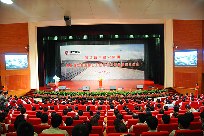 2012年9月29日,秋風(fēng)送爽,丹桂飄香。在這個金秋收獲的日子里,濰坊昌大建設(shè)集團會展中心工程建設(shè)總結(jié)表彰頒獎盛典在魯臺經(jīng)貿(mào)會展中心的會議中心報告廳隆重舉行。濰坊昌大建設(shè)集團全體高管層領(lǐng)導(dǎo)徐鵬強、朱九洲、滕忠斌、李坤明、姜建魯、穆乃杰、張連悅、張學(xué)智、閆鵬、劉雁冰,會展中心工程各參建單位全體參建人員、管理骨干,各分、子公司領(lǐng)導(dǎo)班子成員、管理骨干,集團總部全體人員,集團駐會展中心工程建設(shè)現(xiàn)場指揮部以及應(yīng)邀參會的安順片區(qū)指揮部、工程設(shè)計、監(jiān)理、咨詢等有關(guān)單位負責(zé)人共581人參加了頒獎盛典。應(yīng)集團的邀請,濰坊市人民政府副市長夏芳晨出席頒獎活動并作重要講話,市政府副秘書長于為凱,市建設(shè)局局長李廣東、副局長張文等出席上述活動。