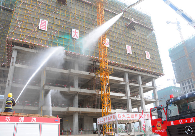 為切實(shí)推進(jìn)施工現(xiàn)場(chǎng)消防安全管理,提高全員消防應(yīng)變能力,以實(shí)際行動(dòng)開(kāi)展好“六月安全月”活動(dòng),2013年6月5日上午,集團(tuán)公司在高新區(qū)中央商務(wù)區(qū)施工現(xiàn)場(chǎng)組織了大型消防演練活動(dòng)。來(lái)自各基層單位分管生產(chǎn)的經(jīng)理、工程管理人員,施工現(xiàn)場(chǎng)專職安全員,演練現(xiàn)場(chǎng)三個(gè)分公司的全體管理人員和勞務(wù)專業(yè)隊(duì)伍,高新區(qū)工程建設(shè)、總承包、監(jiān)理單位以及勞務(wù)分包單位代表等近1000人參加了演練活動(dòng)。