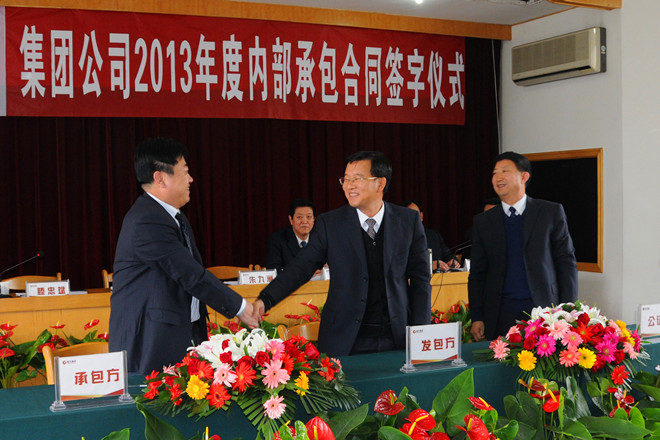 2013年4月20日下午,集團公司2013年度內部經(jīng)營承包合同簽字儀式在集團總部第一會議室舉行。集團公司高管層領導徐鵬強、朱九洲、滕忠斌、李坤明、姜建魯、穆乃杰、張連悅、張學智、閆鵬、劉雁冰,17個簽約單位領導班子成員、總部部室負責人共80人參加了承包合同簽字儀式。