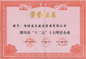 2016年3月18日晚,濰坊市“輝煌十二五”系列評選活動(dòng)頒獎(jiǎng)晚會(huì)在濰坊電視臺(tái)一樓800平米演播大廳舉行。晚會(huì)上,公布了各評選結(jié)果并進(jìn)行了頒獎(jiǎng)。濰坊市委副書記王獻(xiàn)玲,市委宣傳部部長、高新區(qū)黨工委書記初寶杰以及毛秀鳳、潘強(qiáng)、李士來等市領(lǐng)導(dǎo)出席頒獎(jiǎng)典禮并為獲獎(jiǎng)?wù)哳C獎(jiǎng)。集團(tuán)總經(jīng)理朱九洲出席頒獎(jiǎng)晚會(huì),并代表集團(tuán)公司接受“全市十大明星企業(yè)”榮譽(yù)。出席頒獎(jiǎng)晚會(huì)的還有市發(fā)改委等部委、主辦單位領(lǐng)導(dǎo),各縣市區(qū)、市屬各開發(fā)區(qū)黨(工)委宣傳部部長等。 輝煌“十二五”系列評選活動(dòng),是按照市委主要領(lǐng)導(dǎo)意見,市委宣傳部組織濰坊報(bào)業(yè)集團(tuán)、濰坊廣播影視集團(tuán)在全市范圍內(nèi)開展的活動(dòng)。評選期間,集團(tuán)公司作為“全市十大明星企業(yè)”候選,受到社會(huì)廣泛關(guān)注和點(diǎn)擊投票,并獲總票數(shù)第二好成績。