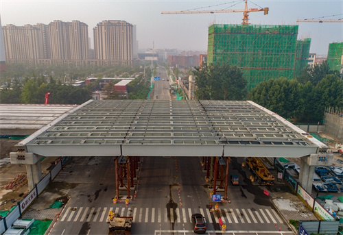 奮戰(zhàn)兩個(gè)晚上完成路口鋼箱梁吊裝為市民提供最大便捷——集團(tuán)寶通街快速路東方路、金馬路路口鋼箱梁吊裝完成