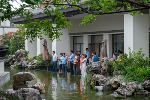 2022年7月6日,由濰坊市民政局社會組織培育中心組織的以“建設學習型協(xié)會、商會組織”為目的的第16期“訪名企、共發(fā)展”學習交流活動,走進昌大集團參觀交流。濰坊市民政局二級調(diào)研員李凡華率十四家協(xié)會、商會會長、秘書長出席了這次交流活動。集團公司監(jiān)事會主席、紀委書記、工會主席穆乃杰全程陪同。 該第16期行業(yè)協(xié)會、商會諸位會長、秘書長在集團公司期間,先后參觀了集團企業(yè)展廳、建筑史館、黨建展廊、中頤龍湖康養(yǎng)小鎮(zhèn),深入考察了解了集團公司的發(fā)展,對集團公司的良性發(fā)展給予充分充分肯定和高度評價。在中頤龍湖康養(yǎng)小鎮(zhèn),生活服務總監(jiān)孫玉闖陪同參觀了小鎮(zhèn)已交付的頤園組團、青龍湖公園、頤樂康養(yǎng)中心及頤養(yǎng)洋房樣板間并為大家做詳細講解,對康養(yǎng)小鎮(zhèn)規(guī)劃、建設、運營、康養(yǎng)服務理念及康養(yǎng)服務內(nèi)容等方面有了深入的了解。
