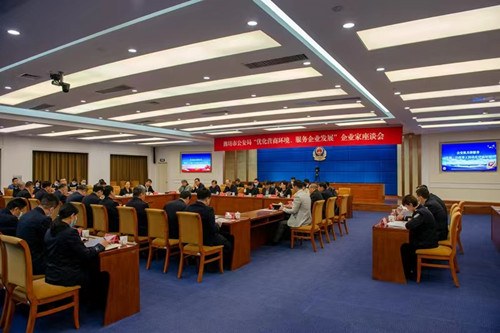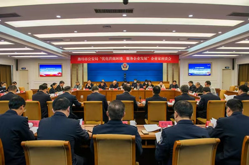 2023年3月22日下午,濰坊市公安局企業(yè)家座談會(huì)在市公安局北樓二樓電視電話會(huì)議室舉行。濰坊市副市長、市政府黨組成員、市公安局黨委書記、局長、督察長徐磊,濰坊市委統(tǒng)戰(zhàn)部副部長、濰坊市工商聯(lián)黨組書記徐鳳徽,濰坊市公安局在家領(lǐng)導(dǎo)班子,濰坊市各領(lǐng)域重點(diǎn)企業(yè)負(fù)責(zé)人,市公安局指揮中心、政治部等有關(guān)部門主要負(fù)責(zé)同志出席會(huì)議。會(huì)議通報(bào)了去年以來市公安機(jī)關(guān)有關(guān)工作情況,解讀近期市公安局出臺的服務(wù)企業(yè)相關(guān)文件,聽取了與會(huì)同志對公安機(jī)關(guān)服務(wù)企業(yè)的相關(guān)需求和意見建議,徐磊副市長講了話。會(huì)上,集團(tuán)公司董事長徐鵬強(qiáng)對一直以來公安系統(tǒng)為企業(yè)發(fā)展?fàn)I造的良好環(huán)境表示感謝,對廣大公安干警落實(shí)治安防范措施、加大掃黑除惡力度;嚴(yán)厲打擊經(jīng)濟(jì)犯罪、挽回經(jīng)濟(jì)損失;交通運(yùn)輸中的指導(dǎo)服務(wù);網(wǎng)警部門高效的輿情管控等諸項(xiàng)工作中的辛勤付出表示真誠謝意。并希望繼續(xù)加強(qiáng)警企共建,共同攜手抓穩(wěn)定、?保平安、促和諧,在全市拼經(jīng)濟(jì)、搞建設(shè)、抓發(fā)展中做出更大的貢獻(xiàn)。