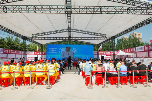 2023年6月6日上午,山東省暨濰坊市住建系統(tǒng)2023年“安全生產(chǎn)月”通過視頻互動全省聯(lián)動方式全面啟動。山東省住建廳設(shè)置主會場,其它地市設(shè)置分會場,濰坊市住建系統(tǒng)啟動儀式在集團(tuán)二建公司、七建公司施工的泰和原筑施工現(xiàn)場舉行。市住建局黨組書記、局長馬冰,市應(yīng)急管理局副局長潘心江,市住建局黨組成員、市建筑業(yè)發(fā)展服務(wù)中心主任許增賢,坊子區(qū)副區(qū)長張雷出席啟動活動。集團(tuán)公司總裁朱九洲、安全總監(jiān)孟憲禮出席活動。全市住建系統(tǒng)管理部門、建設(shè)單位、 監(jiān)理單位、施工單位約200人參加活動。