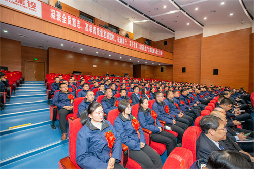 工人文化宮穹頂璀璨、滿天星光,寓義職工大眾之家?!澳廴珕T意志,高舉高質(zhì)量發(fā)展旗幟,砥礪前行、實干奮發(fā),以新質(zhì)生產(chǎn)力實現(xiàn)百年昌大目標!”的大幅標語催人奮發(fā)。上午九時,會議準時開幕。集團董事長徐鵬強、總裁朱九洲以及穆乃杰、姜建魯、吳杰、孟憲禮、房海、劉雁冰、惠守江、王建波等高管出席大會并在主席臺就座。集團公司第九屆職工代表、列席代表,集團公司中層管理人員、2024年度受表彰的先進集體代表和先進個人以及總部全體人員共319人參加大會。