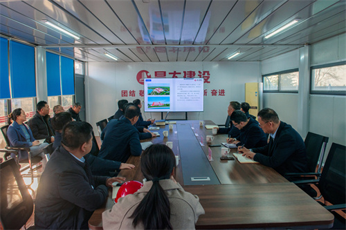 在隨后召開(kāi)的座談會(huì)上,二建公司項(xiàng)目部匯報(bào)了項(xiàng)目前期工作和下一步的工作安排。鄭德前書記代表學(xué)院對(duì)項(xiàng)目的主體封頂表示熱烈祝賀,他表示,工程進(jìn)行的非常順利,得益于施工單位、監(jiān)理單位與學(xué)校相關(guān)部門間的齊心協(xié)力、共同奮斗,對(duì)大家的辛勤付出表示衷心的感謝,對(duì)施工單位前期的工作表示充分的肯定。他同時(shí)強(qiáng)調(diào),該項(xiàng)目建設(shè)對(duì)于學(xué)院升本工作的重要性,并對(duì)項(xiàng)目下一步的工作提出了要求,要求各參建單位要繼續(xù)保持這種一如既往的精氣神,繼續(xù)發(fā)揚(yáng)前期“能打硬仗、善打硬仗”的拼搏精神,保質(zhì)、保量、保安全,確保項(xiàng)目按期竣工交付。集團(tuán)公司總裁朱九洲現(xiàn)場(chǎng)部署項(xiàng)目沖刺階段任務(wù),突出強(qiáng)調(diào)了三個(gè)重點(diǎn):一是強(qiáng)化總包統(tǒng)籌,要求二建公司在后續(xù)工作中發(fā)揮“主心骨”作用,高效協(xié)調(diào)裝飾幕墻公司、安裝公司等專業(yè)單位交叉作業(yè),確保工序無(wú)縫銜接;二是要抓實(shí)精細(xì)化管理,做好現(xiàn)場(chǎng)各種材料的管理,杜絕安全隱患,實(shí)現(xiàn)文明施工常態(tài)化;三是要在后續(xù)的施工中繼續(xù)高標(biāo)準(zhǔn)、嚴(yán)要求,全力以赴做好施工管理,確保工程按期高質(zhì)量完成,為學(xué)校高質(zhì)量發(fā)展賦能。