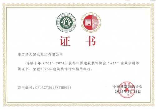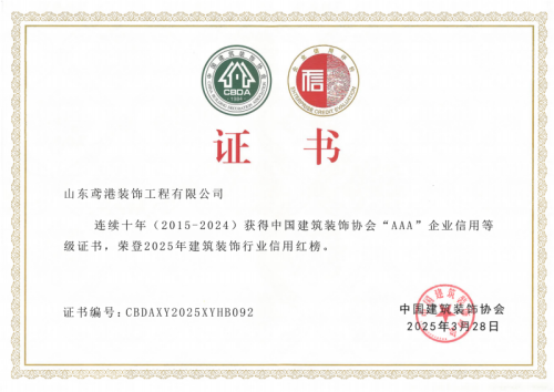 2025年3月28日,中國建筑裝飾協(xié)會(huì)在武漢召開了首屆大國裝飾可持續(xù)發(fā)展大會(huì)。會(huì)上發(fā)布了建筑裝飾行業(yè)信用建設(shè)十年發(fā)展報(bào)告,公布了連續(xù)十年(2015-2024)榮獲中國建筑裝飾協(xié)會(huì)AAA信用等級(jí)企業(yè)名單及2025年度建筑裝飾行業(yè)信用紅榜獲獎(jiǎng)名單,并頒發(fā)了榮譽(yù)證書。